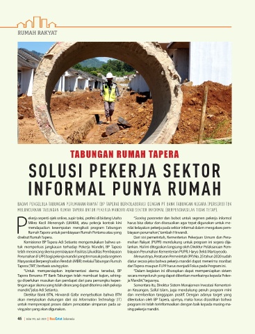 Komisioner BP Tapera Adi Setianto mengemukakan bahwa un- mahan Rakyat (PUPR) mendukung untuk program ini segera dija-